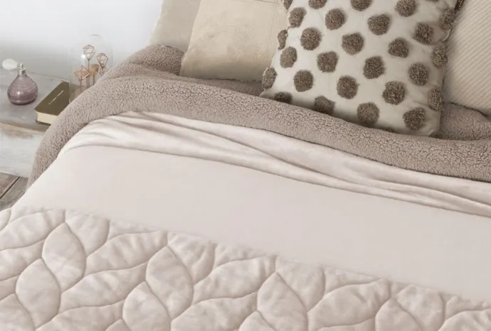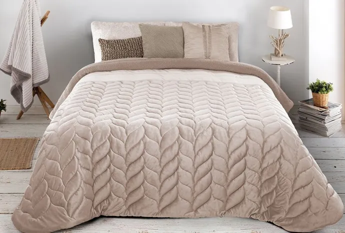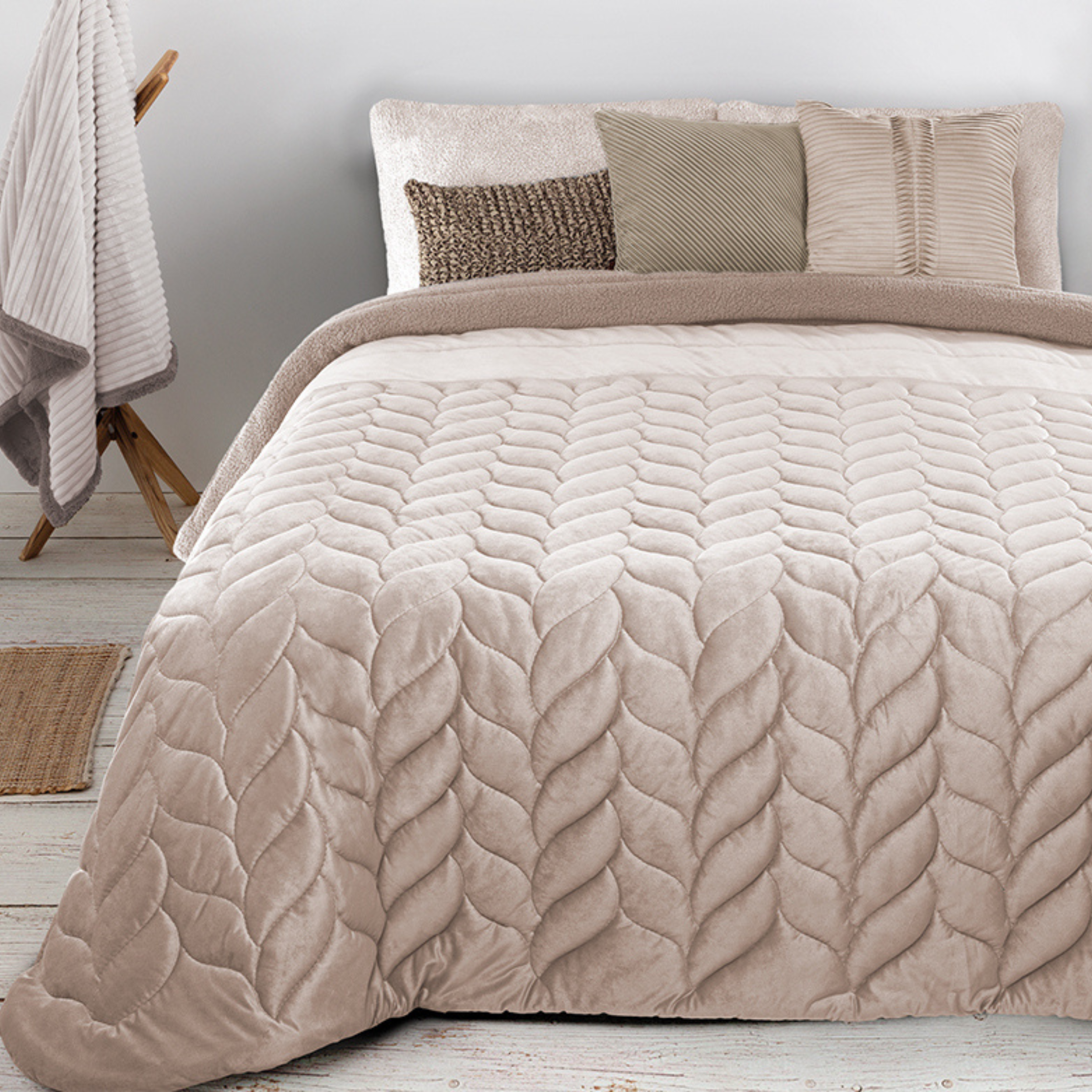 Parure de Lit en Velours Beige- 6 Pièces