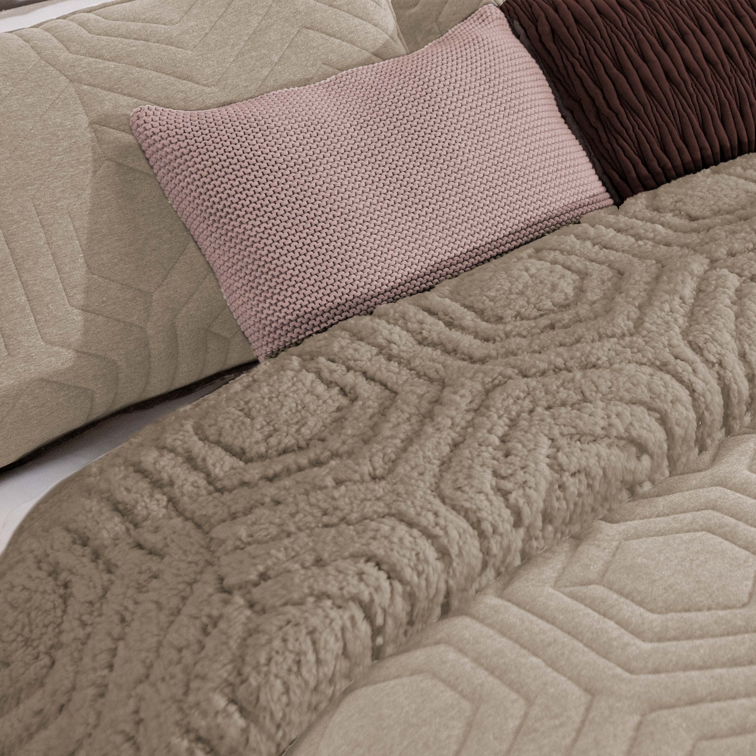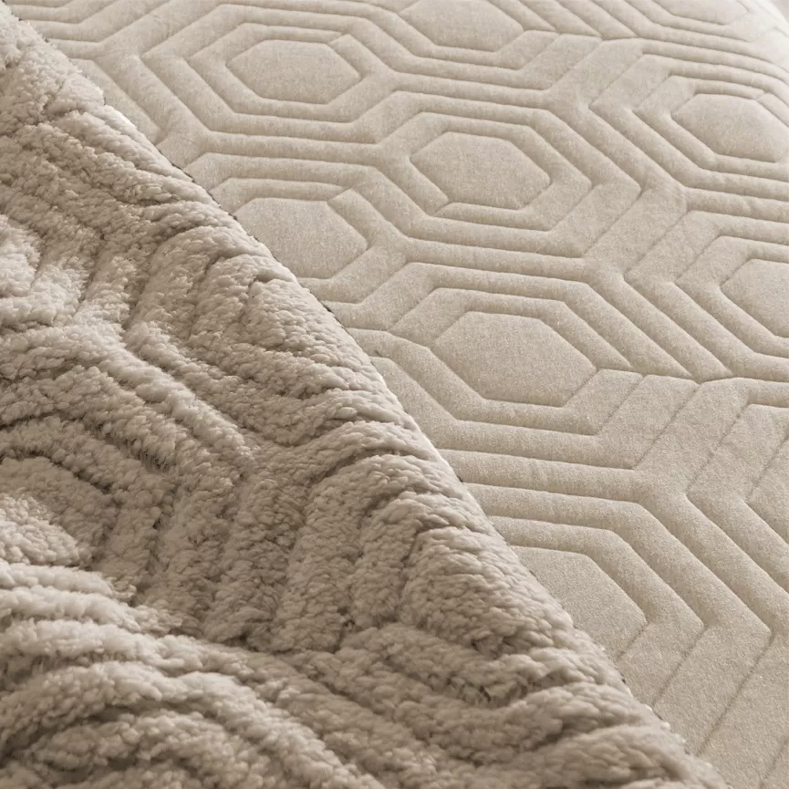 Motif nid d’abeille avec relief jacquard sur une face et sur le dos en peau de mouton sherpa teintée.