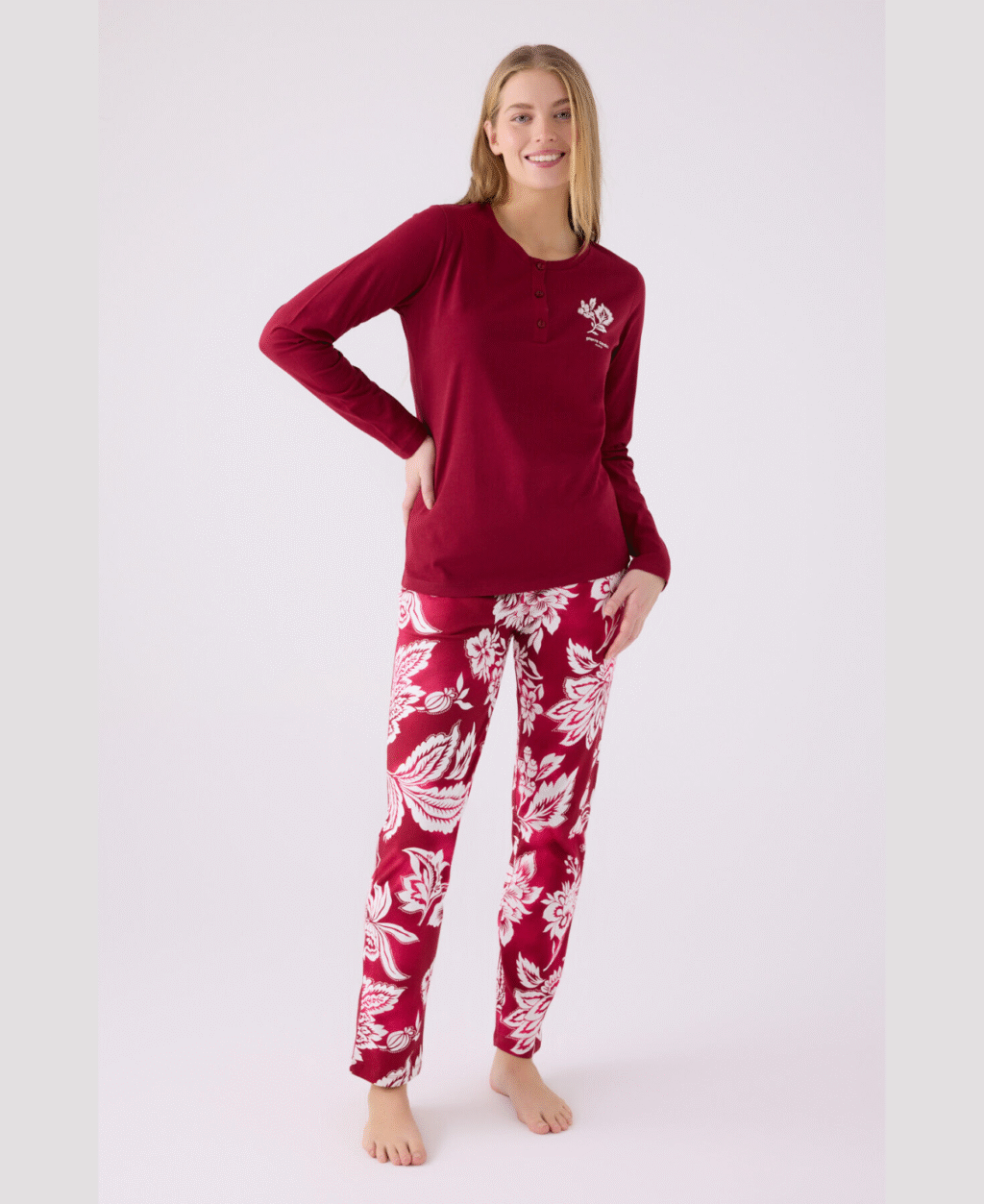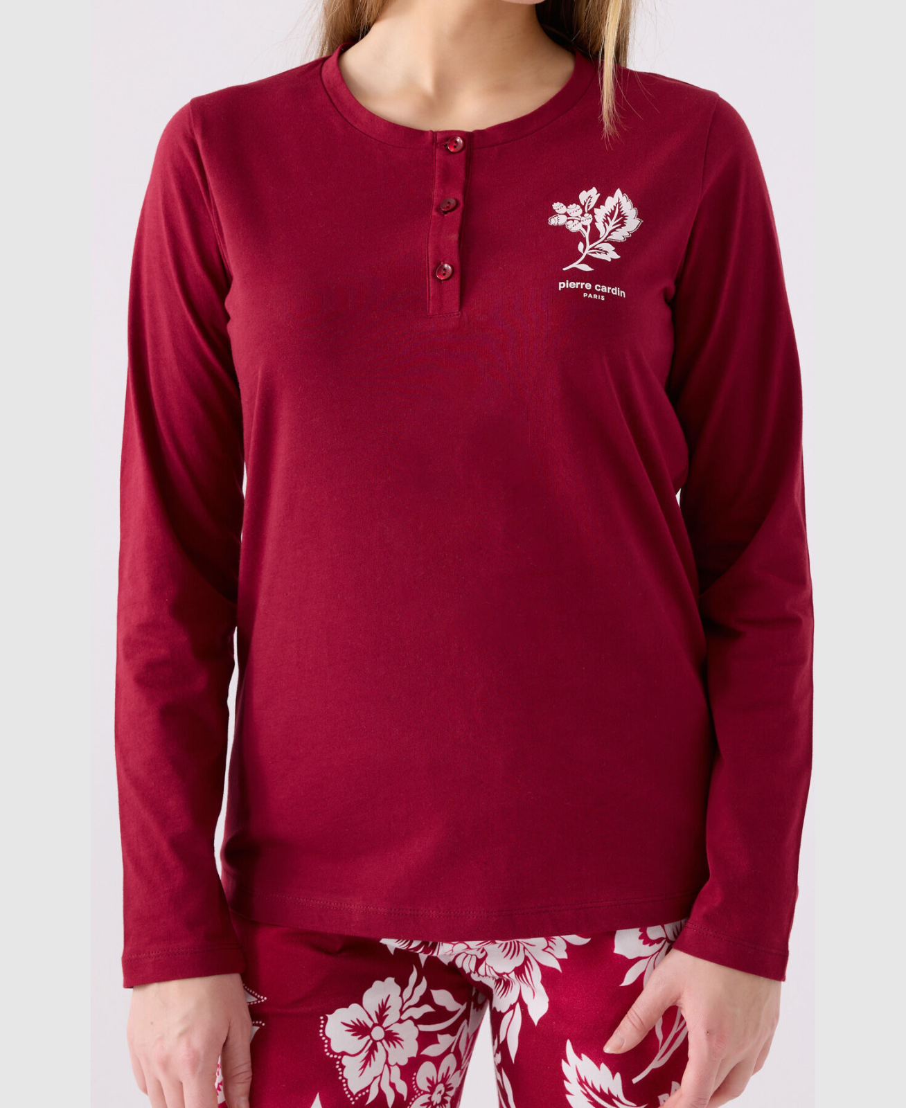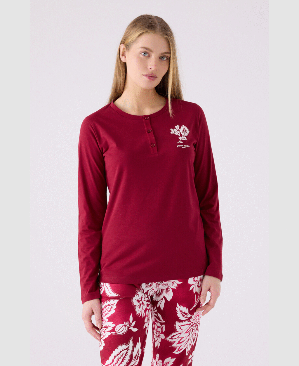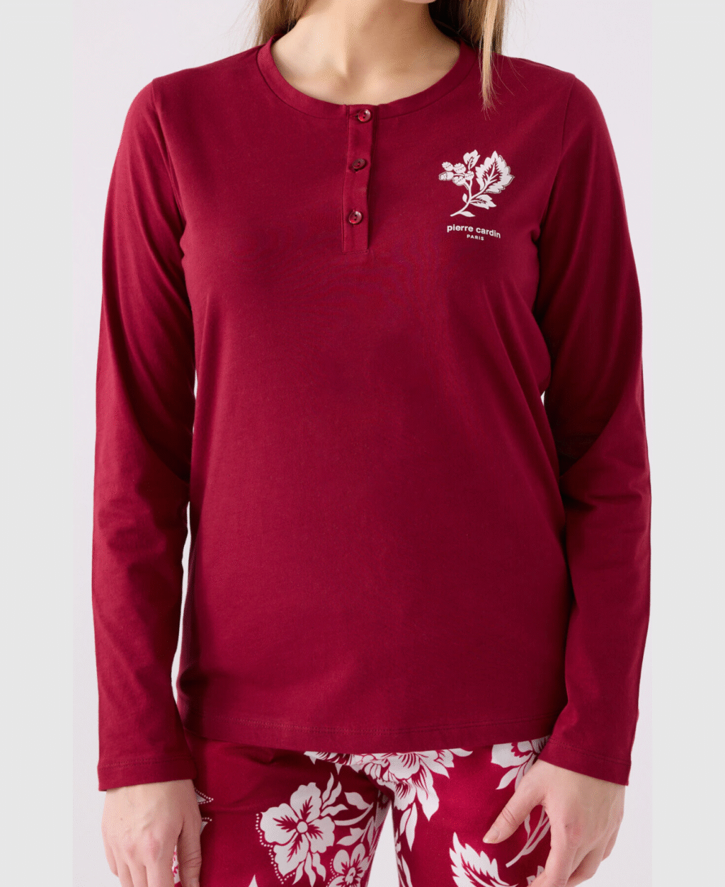 Pierre Cardin Ensemble pyjama à manches longues rouge Claret pour femme 100% cotton organic