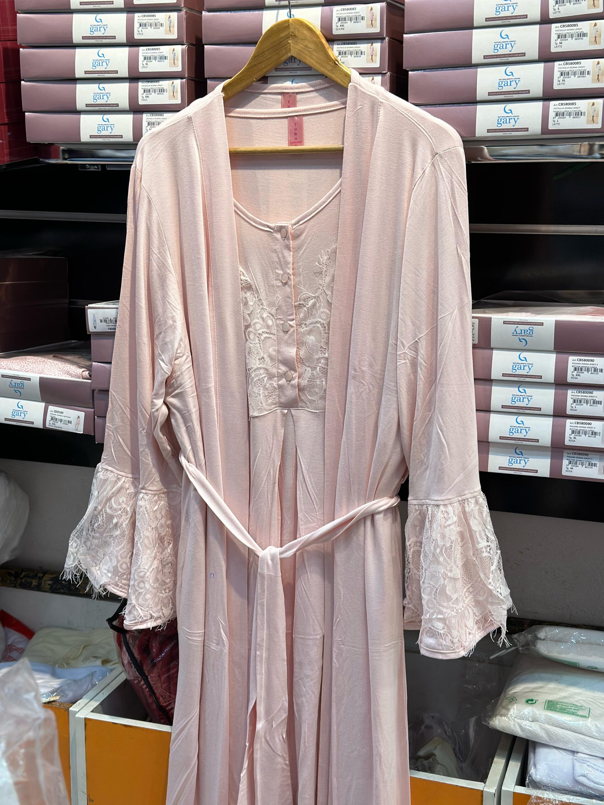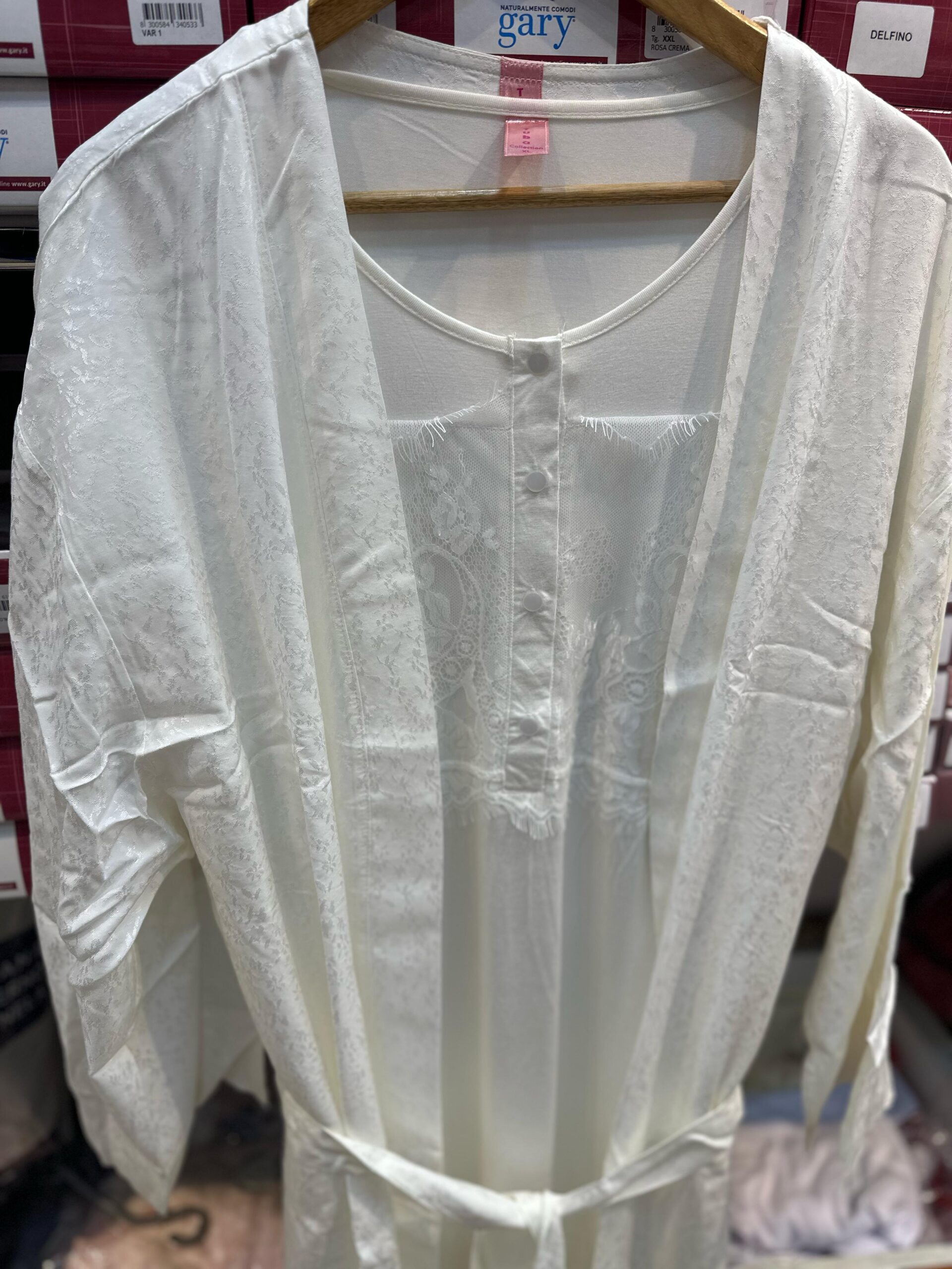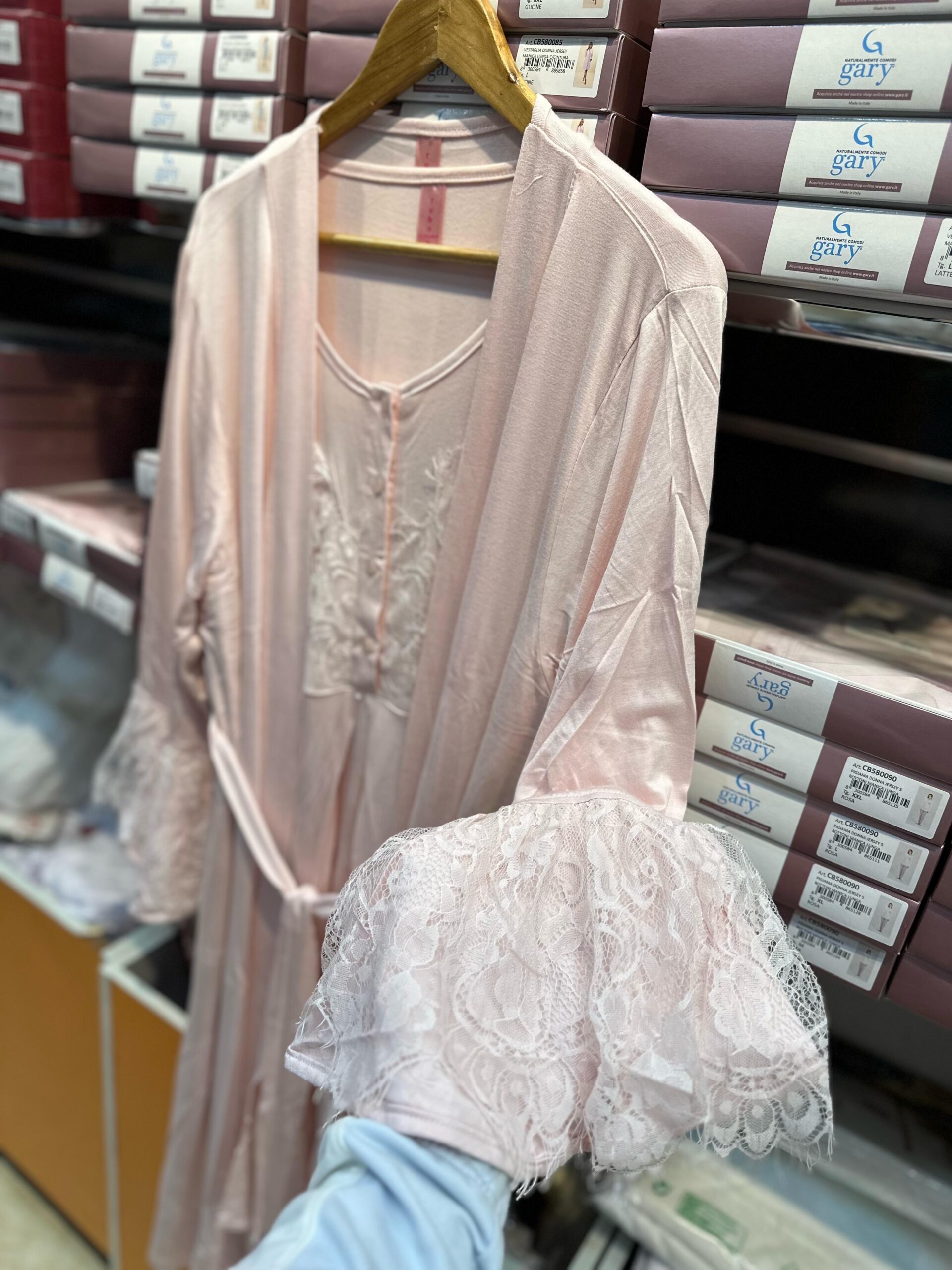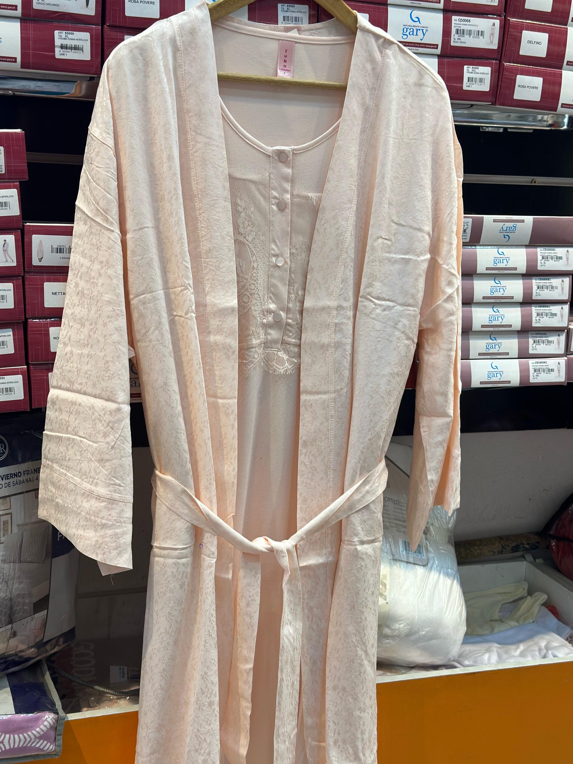 Pyjama Longue tres chic + Pegnoir avec dentelle deluxe