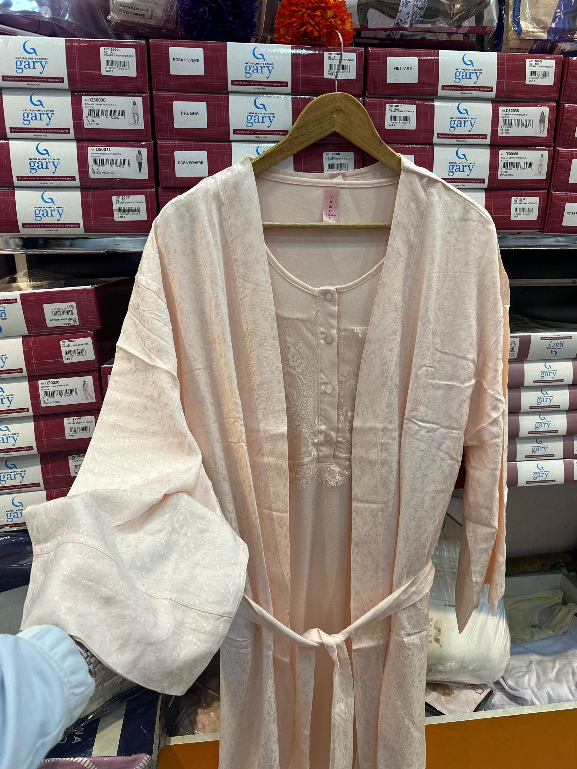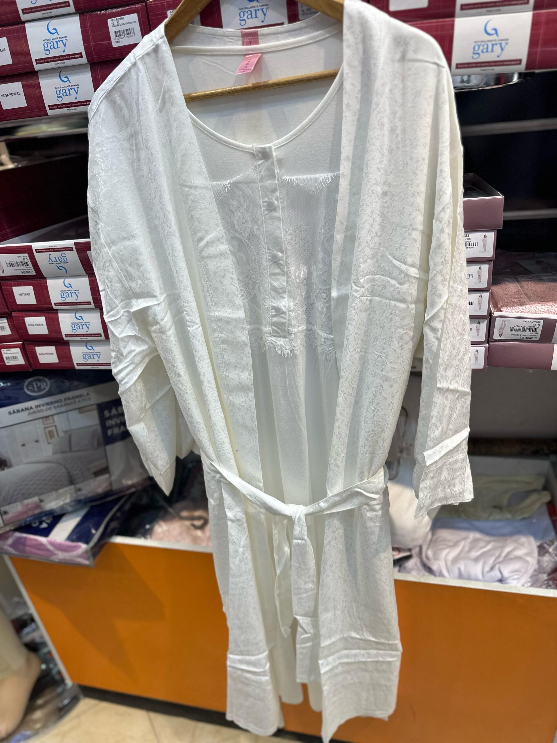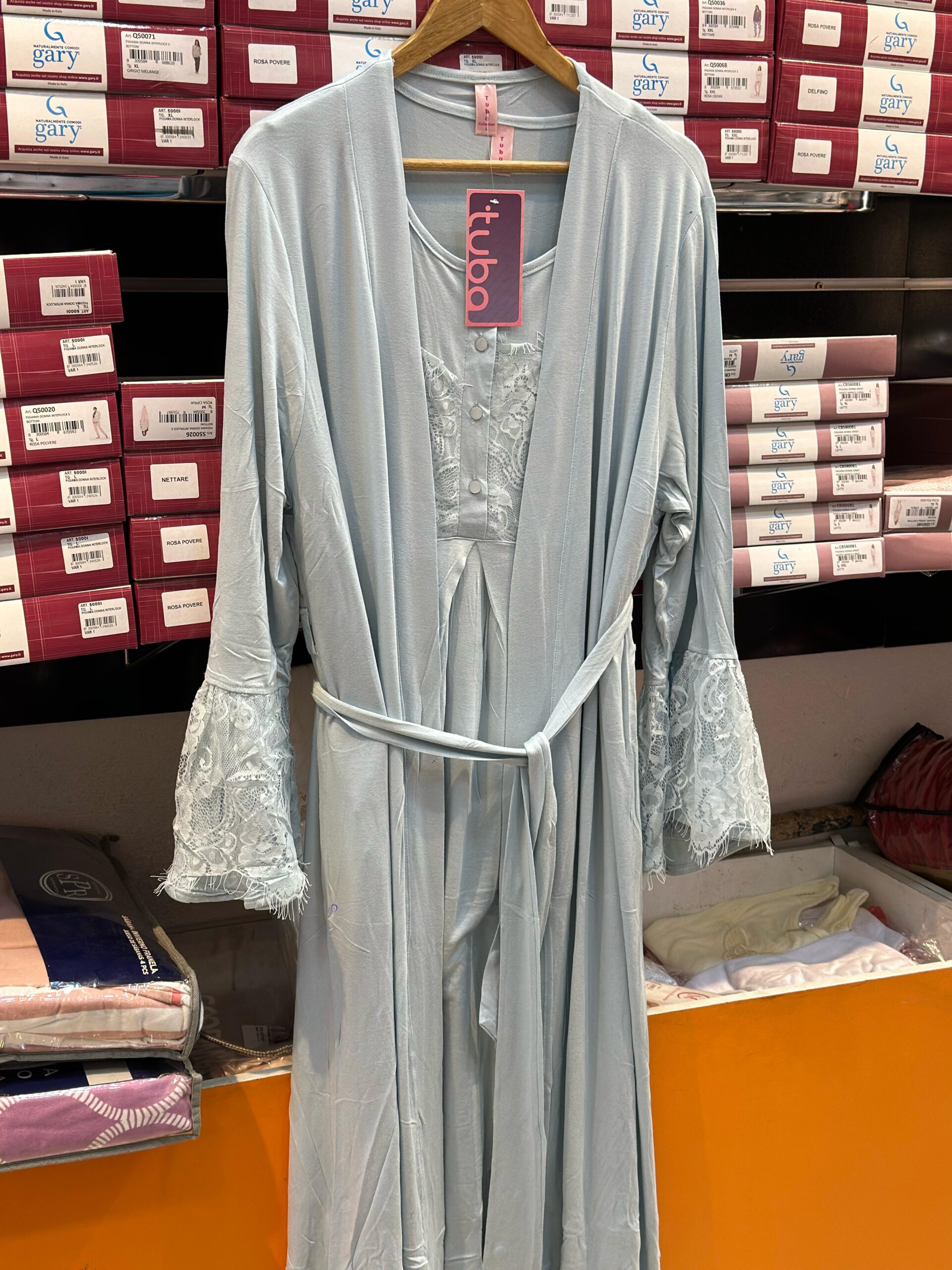 Pyjama Longue tres chic + Pegnoir avec dentelle deluxe