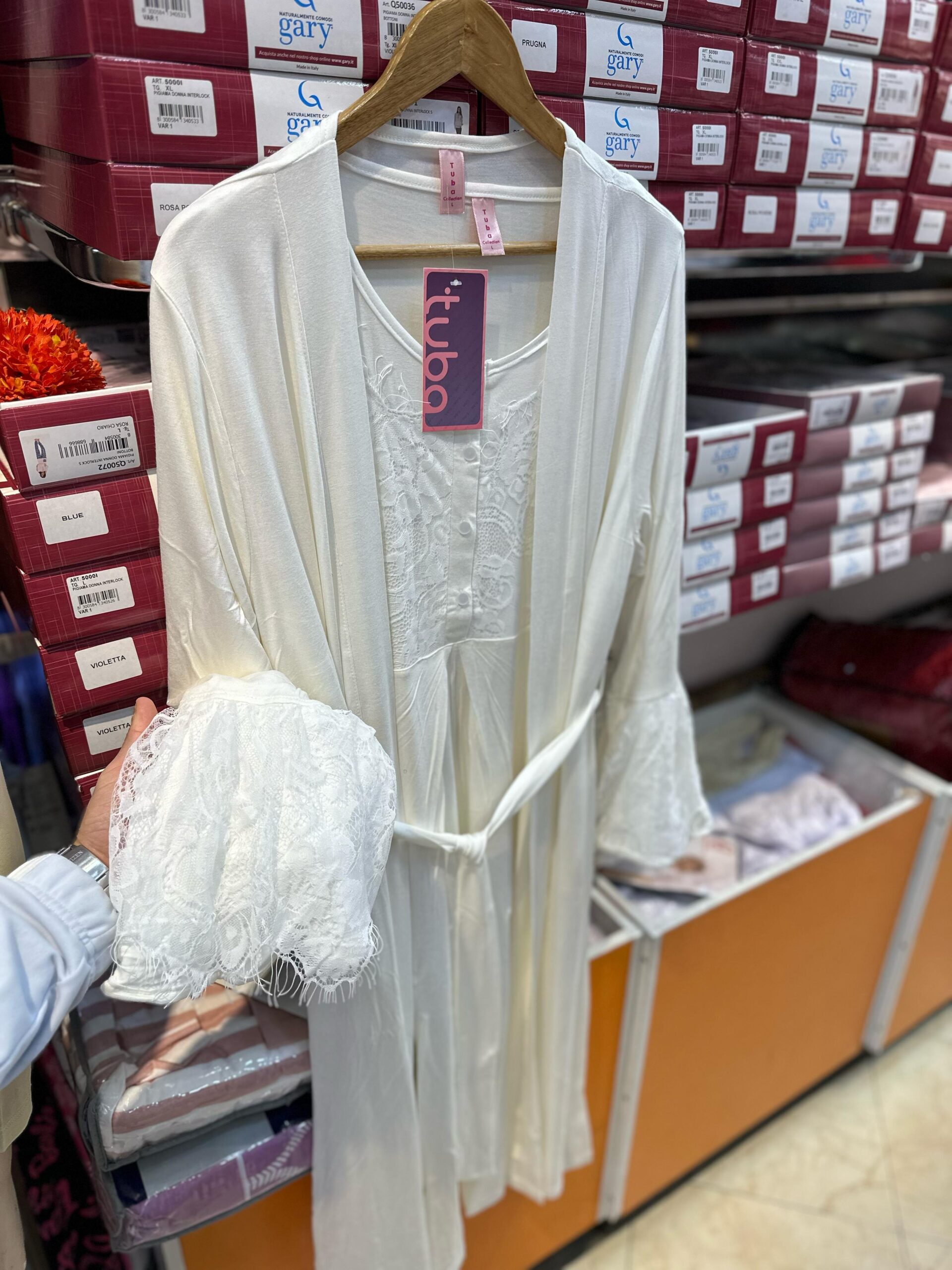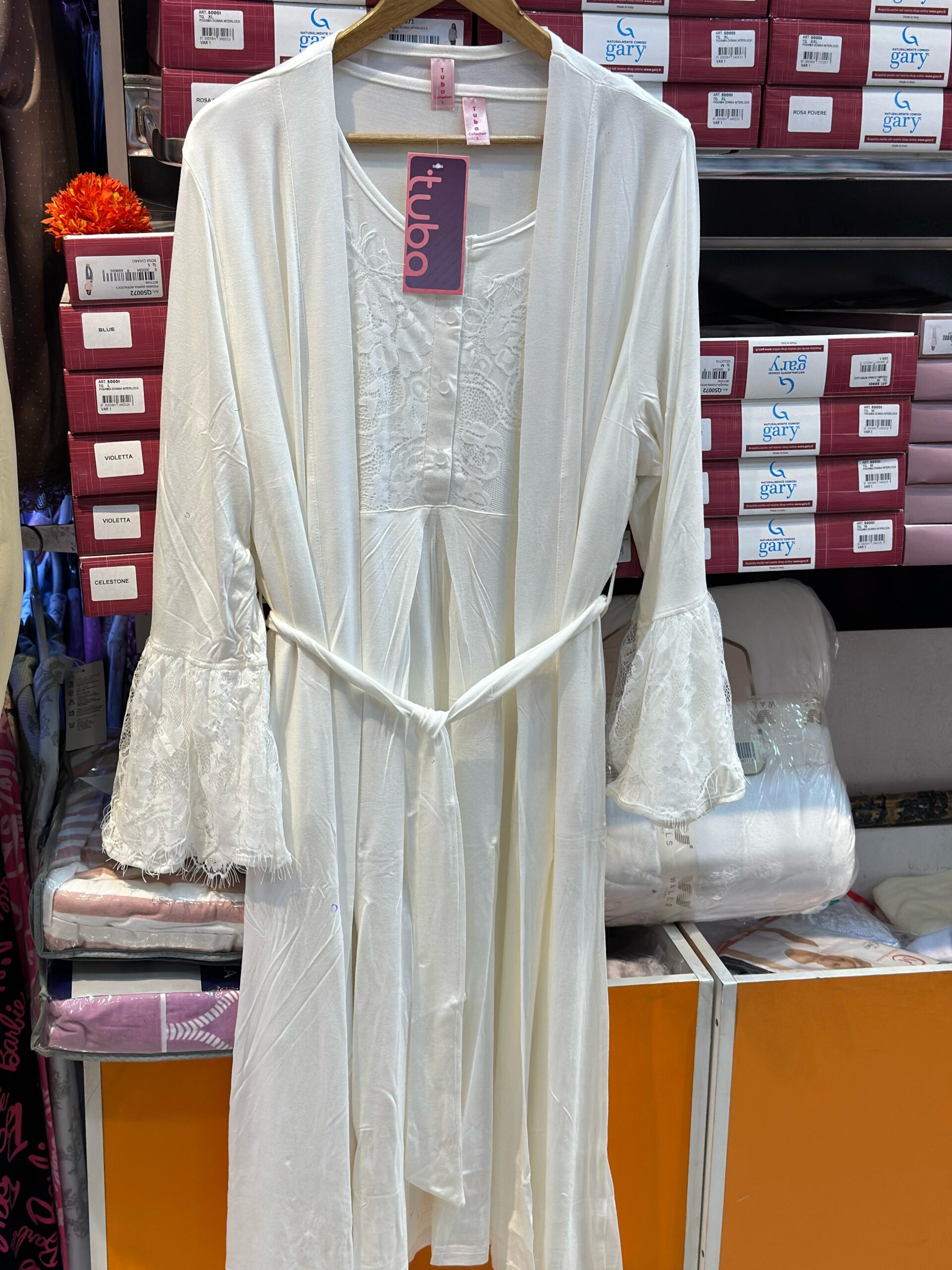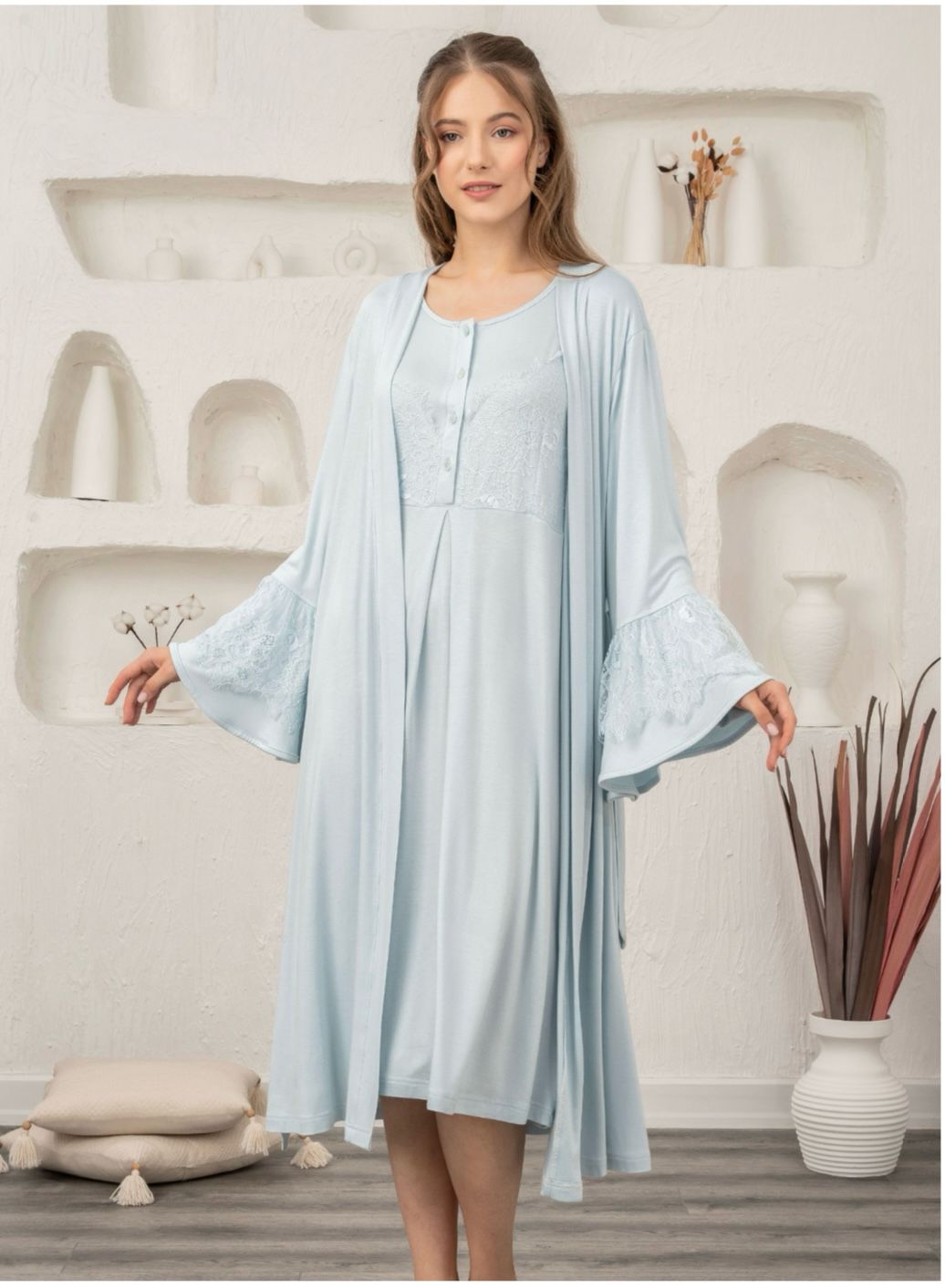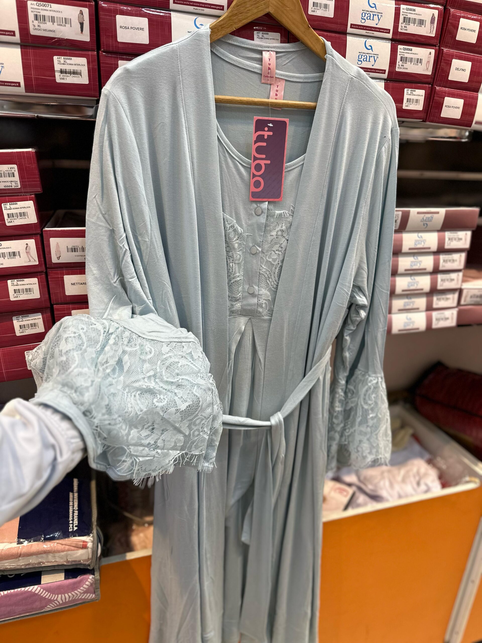 Pyjama Longue tres chic + Pegnoir avec dentelle deluxe